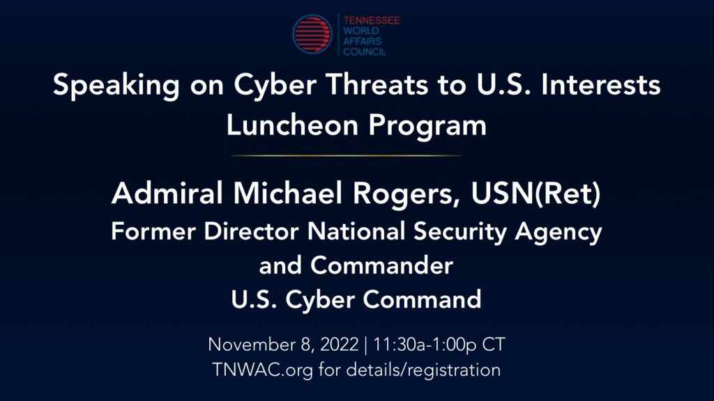 Contact us today to sponsor these programs. The Tennessee World Affairs Council SPECIAL EDITION DISTINGUISHED VISITING SPEAKER SERIES In Person Conversations With Admiral Michael Rogers Former Director National Security Agency/Commander […]